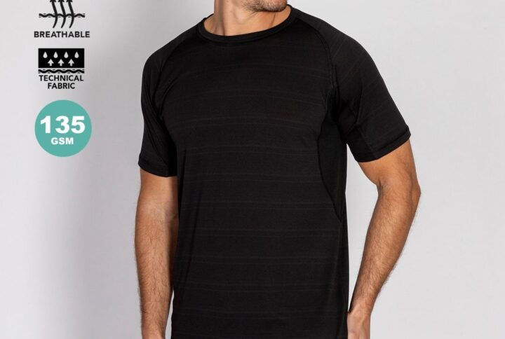 T-shirt technique pour adulte en matériau 100% polyester respirant de 135g/m2. Avec manche Ranglán, col rond et bandes frontales et latérales en tissu respirant microperforé. Disponible en tailles S, M, L, XL, XXL.