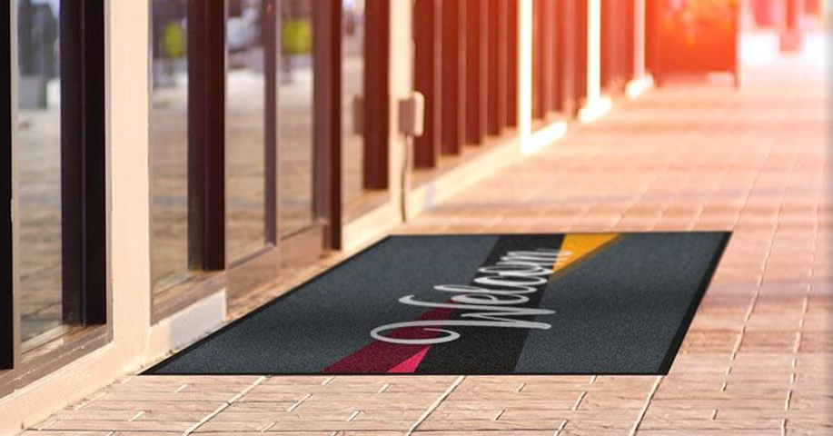 Installez votre tapis extérieur devant votre entrée. En plus de mettre en avant votre marque, il sera une première barrière aux salissures !
