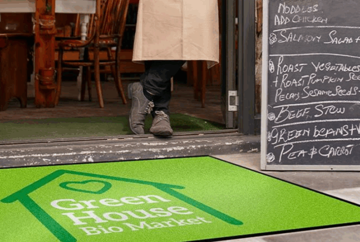 Installez votre tapis extérieur devant votre entrée. En plus de mettre en avant votre marque, il sera une première barrière aux salissures !