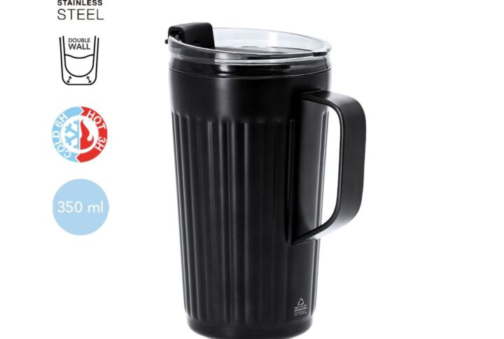 Mug isotherme original à double paroi d’une contenance de 330 ml. Fabriqué en acier inoxydable recyclé, avec un couvercle en bambou et une poignée confortable assortie. Avec acier inoxydable recyclé distinctif. Présenté dans une boîte design kraft individuelle et dans un sac recyclé.L’acier est l’un des matériaux les plus demandés et peut être trouvé presque partout, des produits de tous les jours aux grandes constructions. Avec d’innombrables propriétés, y compris la durabilité et son haut degré de réutilisation, ce qui en fait une alternative très appréciée dans les solutions de durabilité. Correctement traité, il permet d’obtenir de nouvelles ressources d’utilisation infinie.