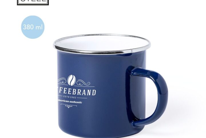 Tasse métallique de capacité de 380ml au design vintage et fini avec des imperfections pour un plus grand sentiment rétro. Gamme variée de couleurs exterieures et interieur blanc avec bord noir. Présentée dans une boîte individuelle.