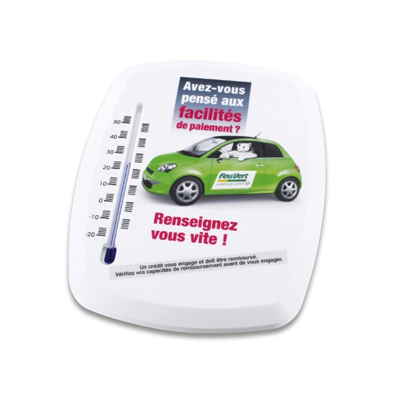 Thermomètre avec un tube de 105 mm. Livré en fourreau individuel. Marquage en 1 Couleur ou plus, ou Quadri-Numérique. Option : Réalisation spéciale à la forme de votre logo. Maquette, moule et forfait de mise en production sur devis.