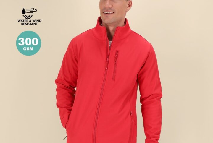 Veste souple RPET en 3 couches, 340 g/m². Avec membrane 8000 mm, imperméable et respirante. Extérieur en Soft Shell et intérieur en micro-polaire noire. Avec poche extérieure sur la poitrine droite et deux poches latérales zippées. Fermeture centrale à glissière et zips inversés sur les poches, avec tirettes noires à cordon. Manches raglan avec système de fermeture Velcro aux poignets en noir. Protège-menton assorti et taille ajustable avec bande élastique et stopper. Étiquette RPET sur le bord du vêtement.