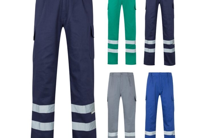 Pantalon en sergé bicolore (210g/m²), doublé, multipoches, en coton (20%) et polyester (80%). Taille élastique, bandes réfléchissantes sur le bas du pantalon. Contient six poches (2 poches françaises, 2 poches latérales à soufflet et 2 poches arrière). Produit conforme au règlement (UE) 2016/425, certifié par EN20471 et classe Nº 1. Taille: S, M, L, XL, 2XL, 3XL