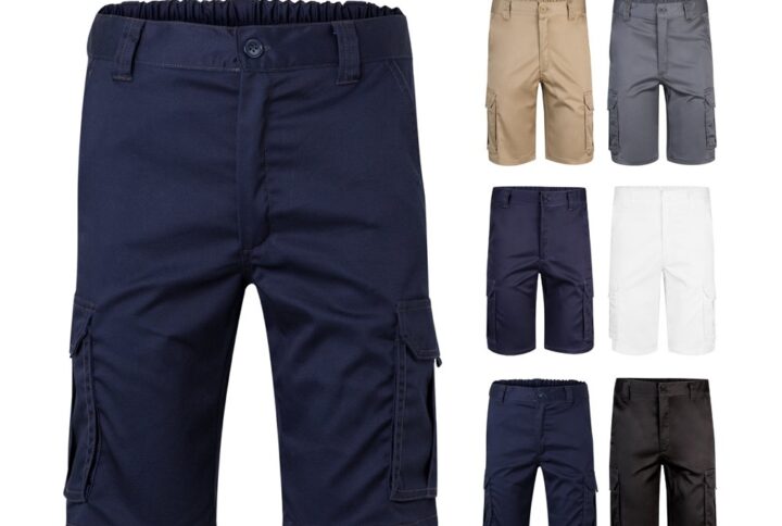 Bermuda shorts in multi-pocket twill (200g/m²), cotton (35%) and polyester (65%). With elasticated waistband and six pockets (2 French pockets, 2 side pockets and 2 back bellows pockets). Taille: 36, 38, 40, 42, 44, 46, 48, 50, 52, 54, 56, 58, 60