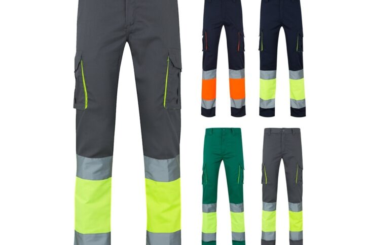Pantalon stretch multipoches (240g/m²), en coton (46%), EME (38%) et polyester (16%). Taille élastique, bandes réfléchissantes sur le bas du pantalon et six poches (2 poches françaises, 2 poches latérales à soufflet et 2 poches arrière à soufflet). Produit conforme au règlement (UE) 2016/425, certifié par EN17353 et classe Nº B2. Taille: 34, 36, 38, 40, 42, 44, 46, 48, 50, 52, 54, 56, 58, 60