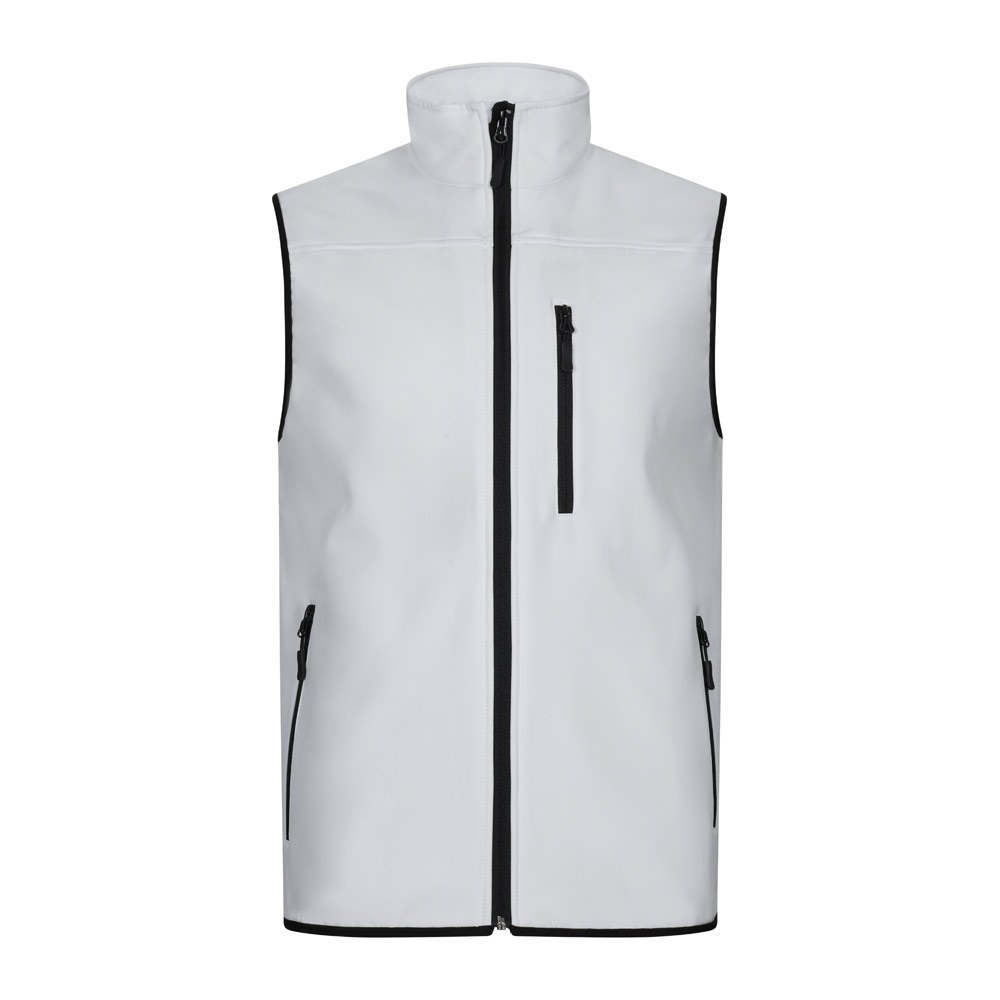 Gilet soft shell (280g/m²), avec doublure polaire, en polyester (94%) et élasthanne (6%). Avec fermeture éclair centrale inversée. Contient 3 poches, avec zip inversé. Taille: XS, S, M, L, XL, 2XL, 3XL