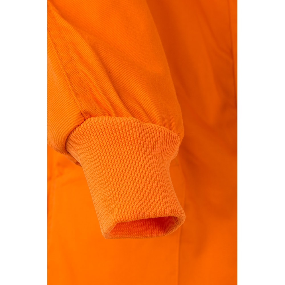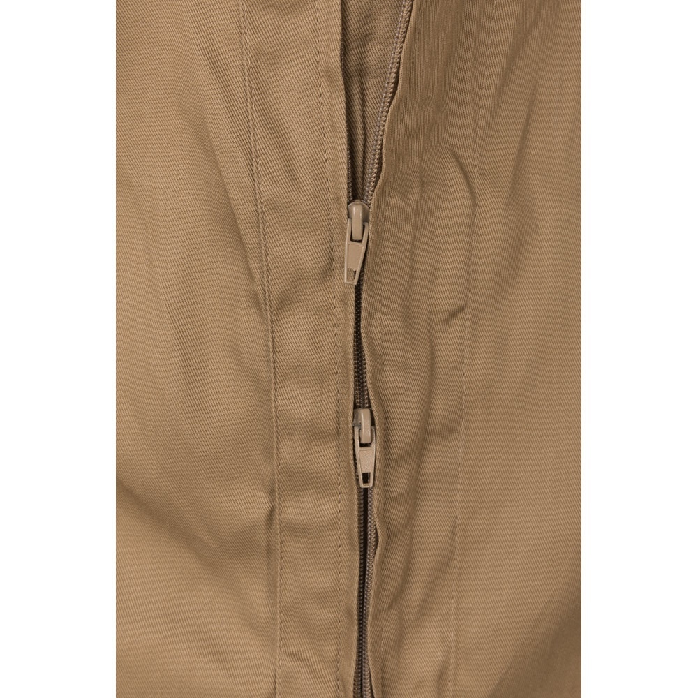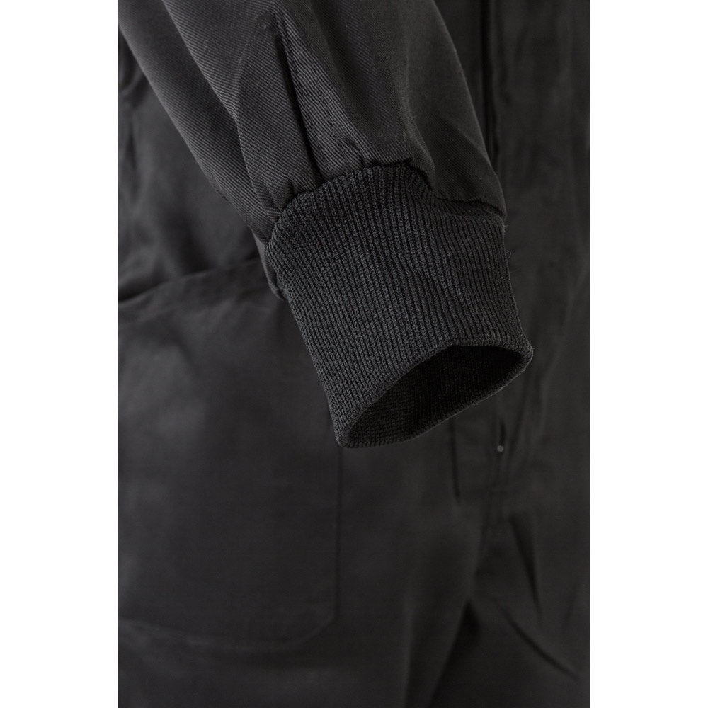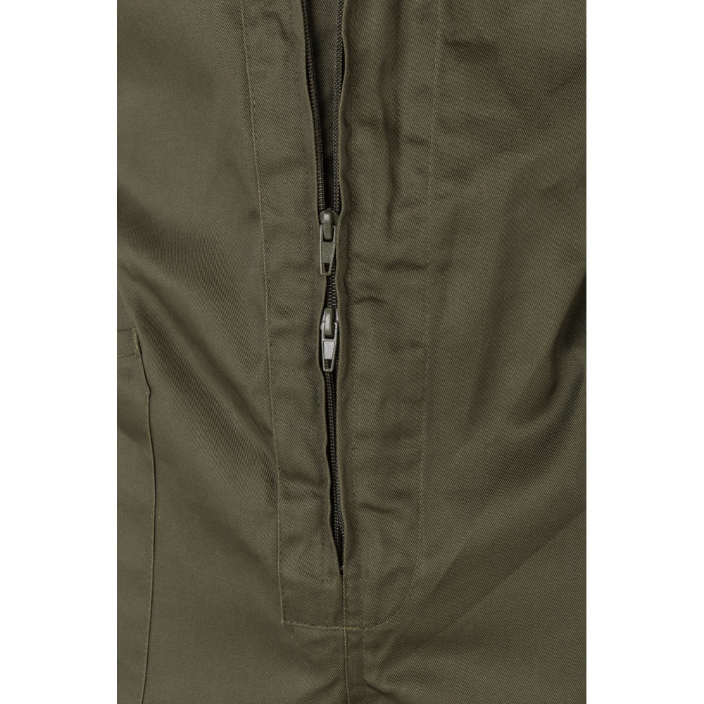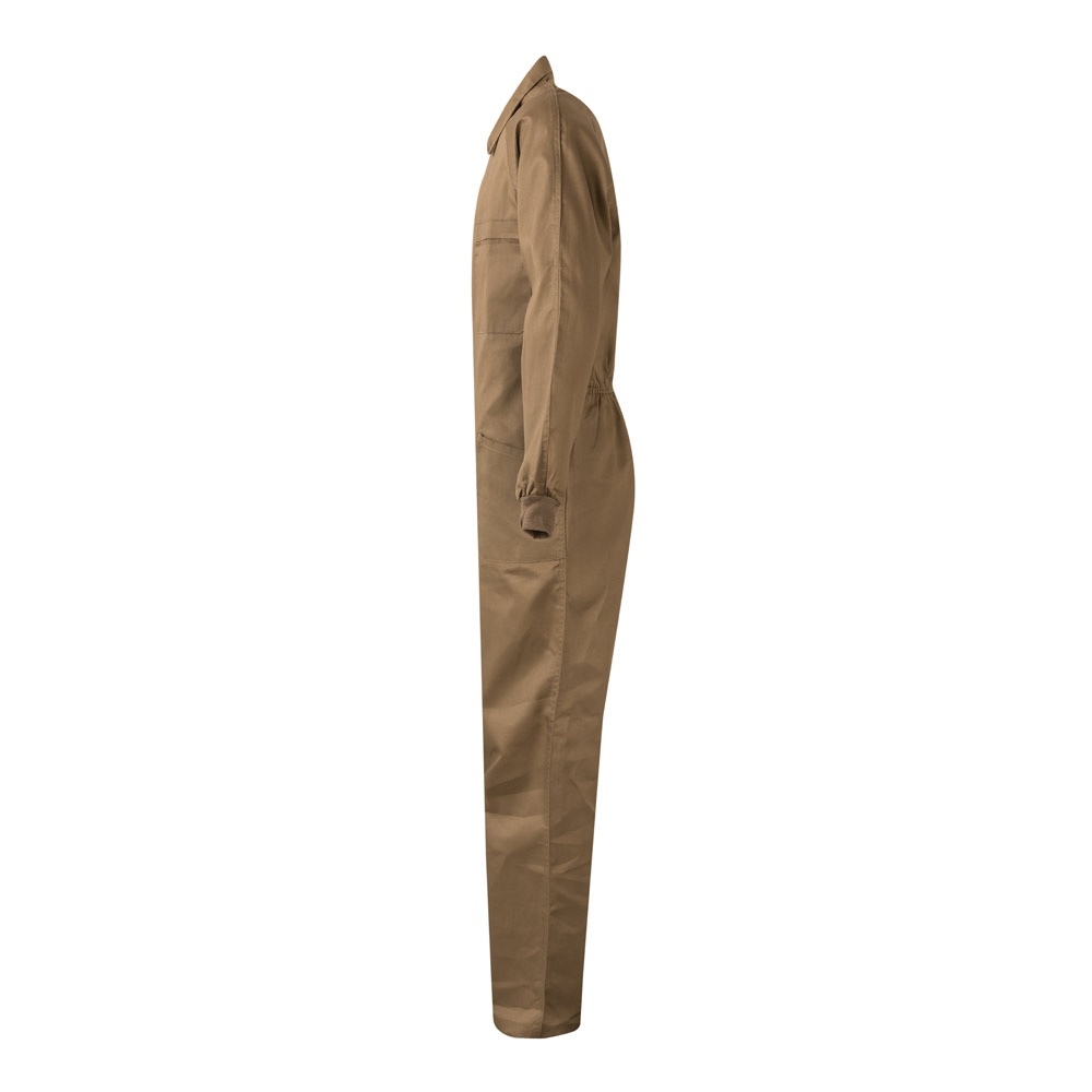 Combinaison en sergé (200g/m²), en coton (35%) et polyester (65%). Fermeture centrale asymétrique à double curseur. Taille élastiquée, poignets côtelés. Cinq poches (1 poche poitrine, 2 poches basses, 1 poche arrière et 1 poche sur la jambe droite). Taille: 48, 50, 52, 54, 56, 58, 60, 62, 64, 66, 68, 70, 72